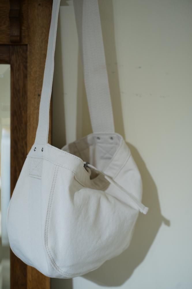 肩への負担を軽減する幅広のショルダーハンドルと、広いマチは当時の作りのまま、ショルダーハンドルの長さを調整し、ボディバッグのように再構築した。