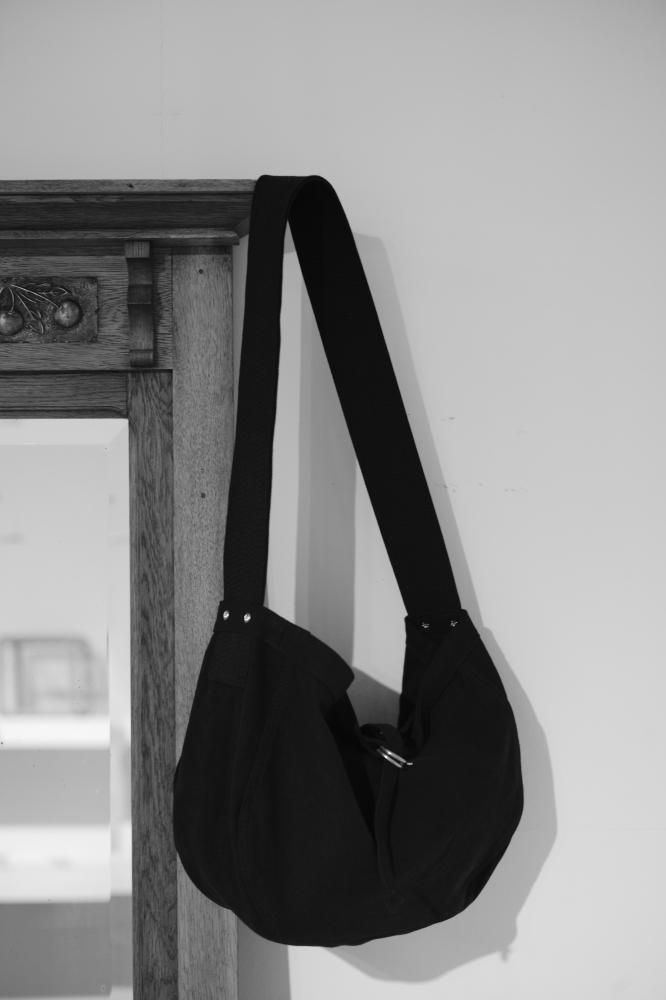 肩への負担を軽減する幅広のショルダーハンドルと、広いマチは当時の作りのまま、ショルダーハンドルの長さを調整し、ボディバッグのように再構築した。