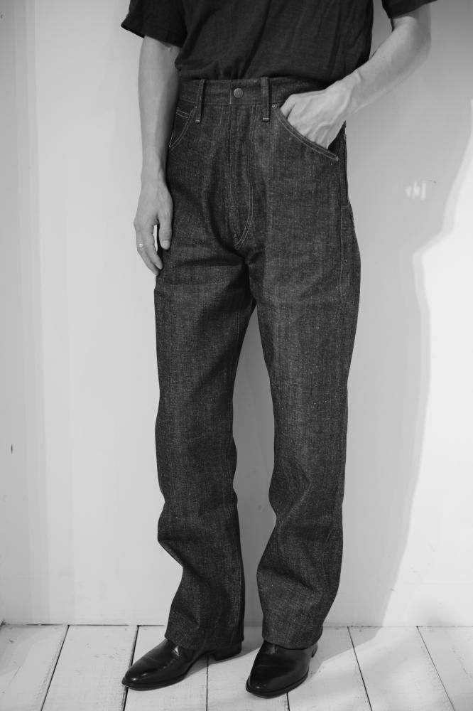 Taiga Takahashiのアイコンともいえる、岡山県のオリジナルデニム生地を使用した、ワイドシルエットのセルヴィッジジーンズ。