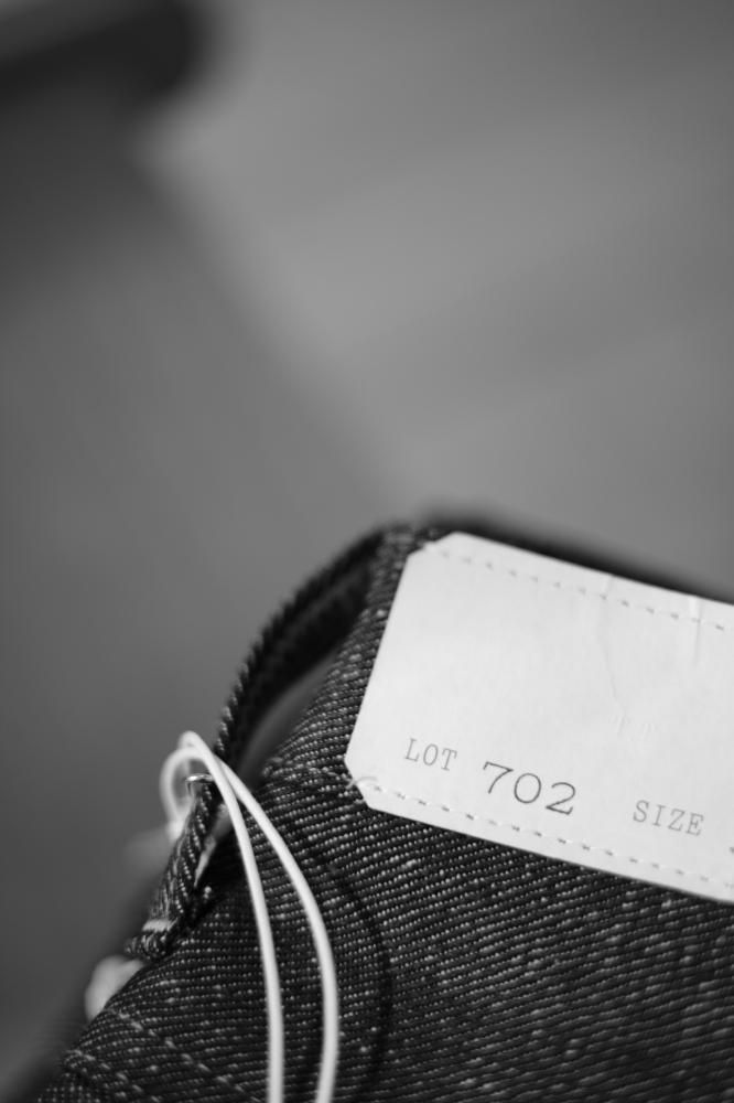 米国産オーガニックコットンを使用し、岡山にある旧式力織機で織り上げた3/1左綾、ライトオンスデニム。現代の織機の10〜20分の1という低速度でしか織ることができないシャトル織機とも呼ばれる旧式力織機でゆっくりと織り上げたデニム生地は、綿糸本来の凹凸が残り、いい意味でムラができる。