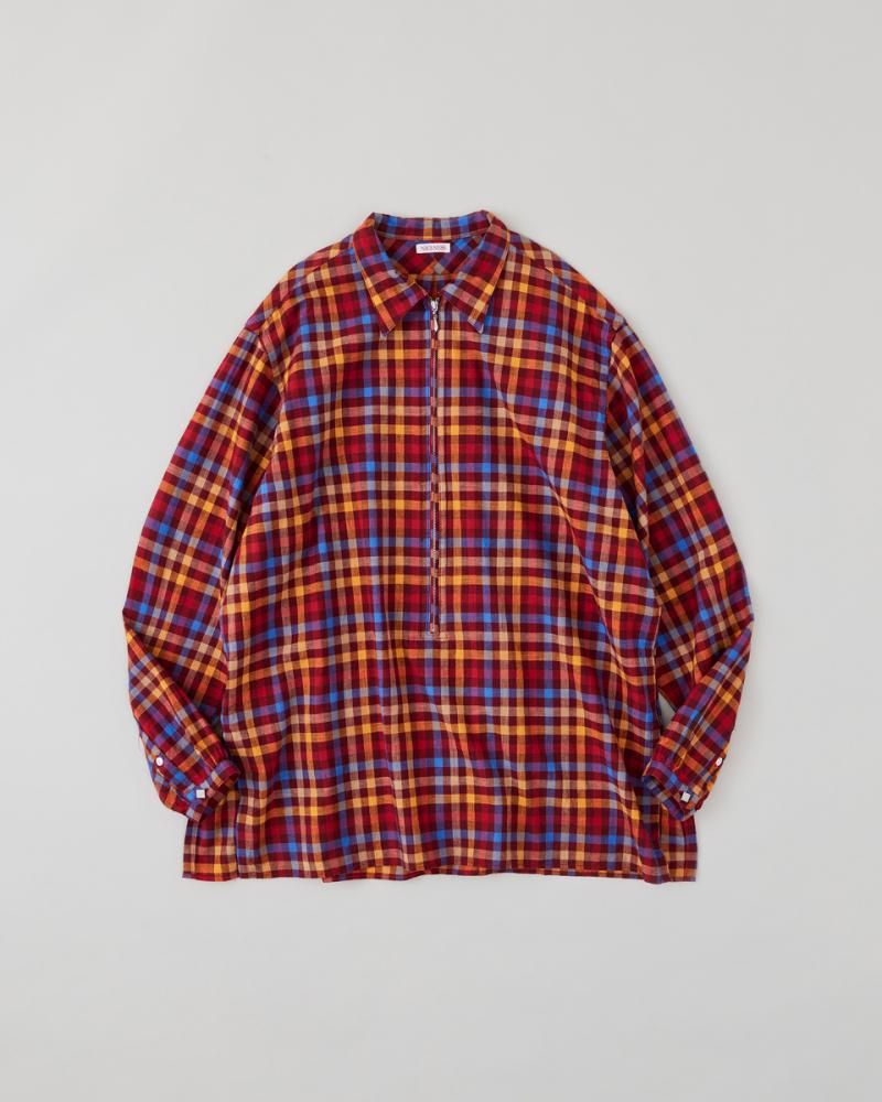 NICENESS LUCA Deadstock Check Long Zip Pullover Shirt ORANGE NICENESS LUCA Deadstock Check Long Zip Pullover Shirt ORANGE